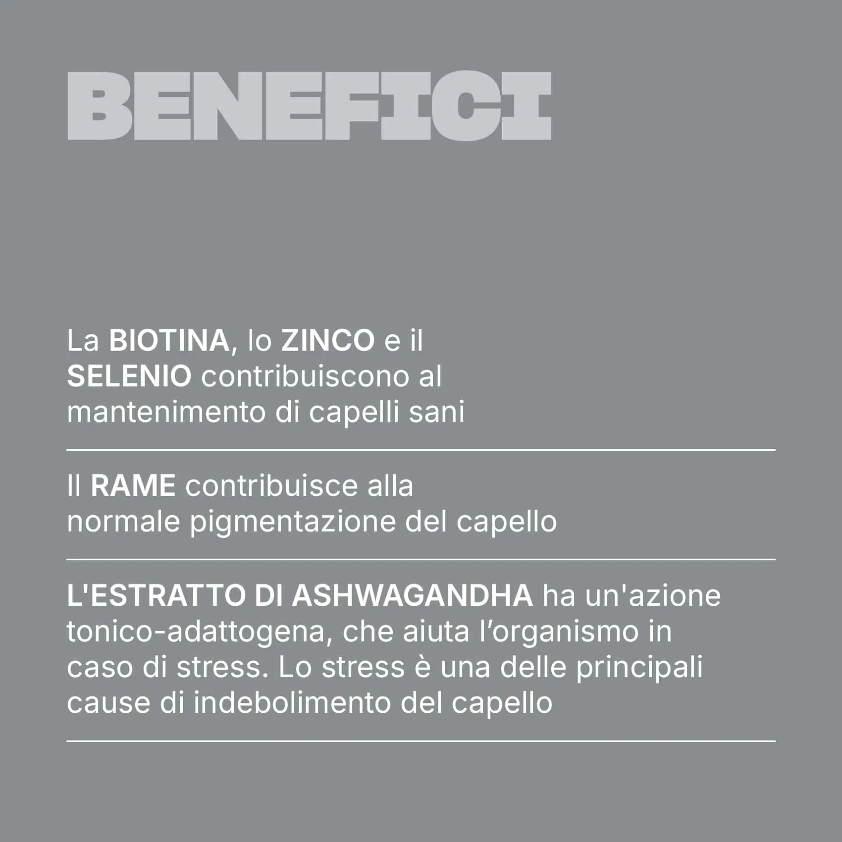 Azione rinforzante clinicamente testata. Con estratto di Ashwagandha che aiuta l'organismo in caso di stress.