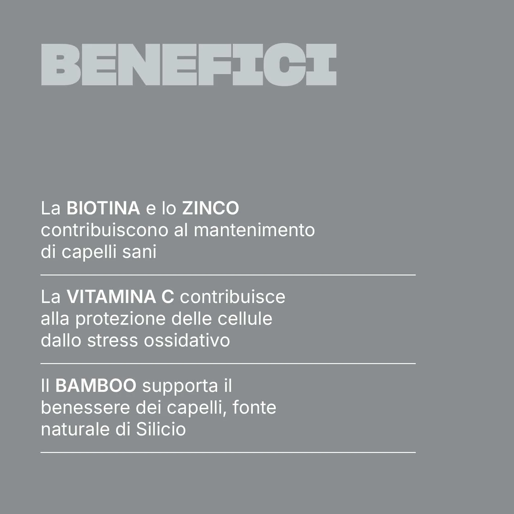 Ideale per donne e uomini dai capelli sfibrati e spenti. Con Bamboo, biotina, zinco e olio di ribes nero contenente Omega 6.